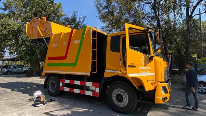 ตัวรถจากในภาพคือรถบรรทุกดัดแปลงติดตั้งตู้ขยะอัดท้าย: